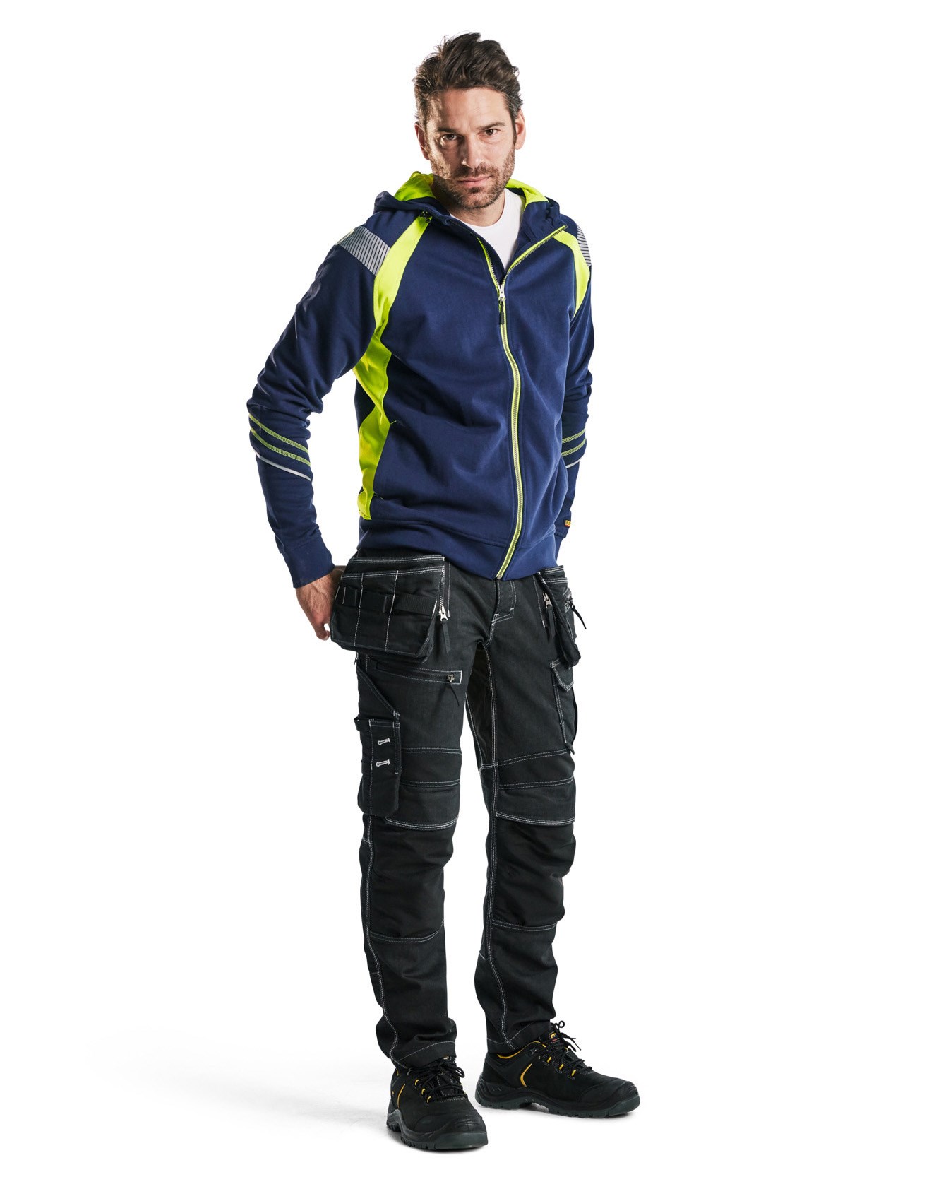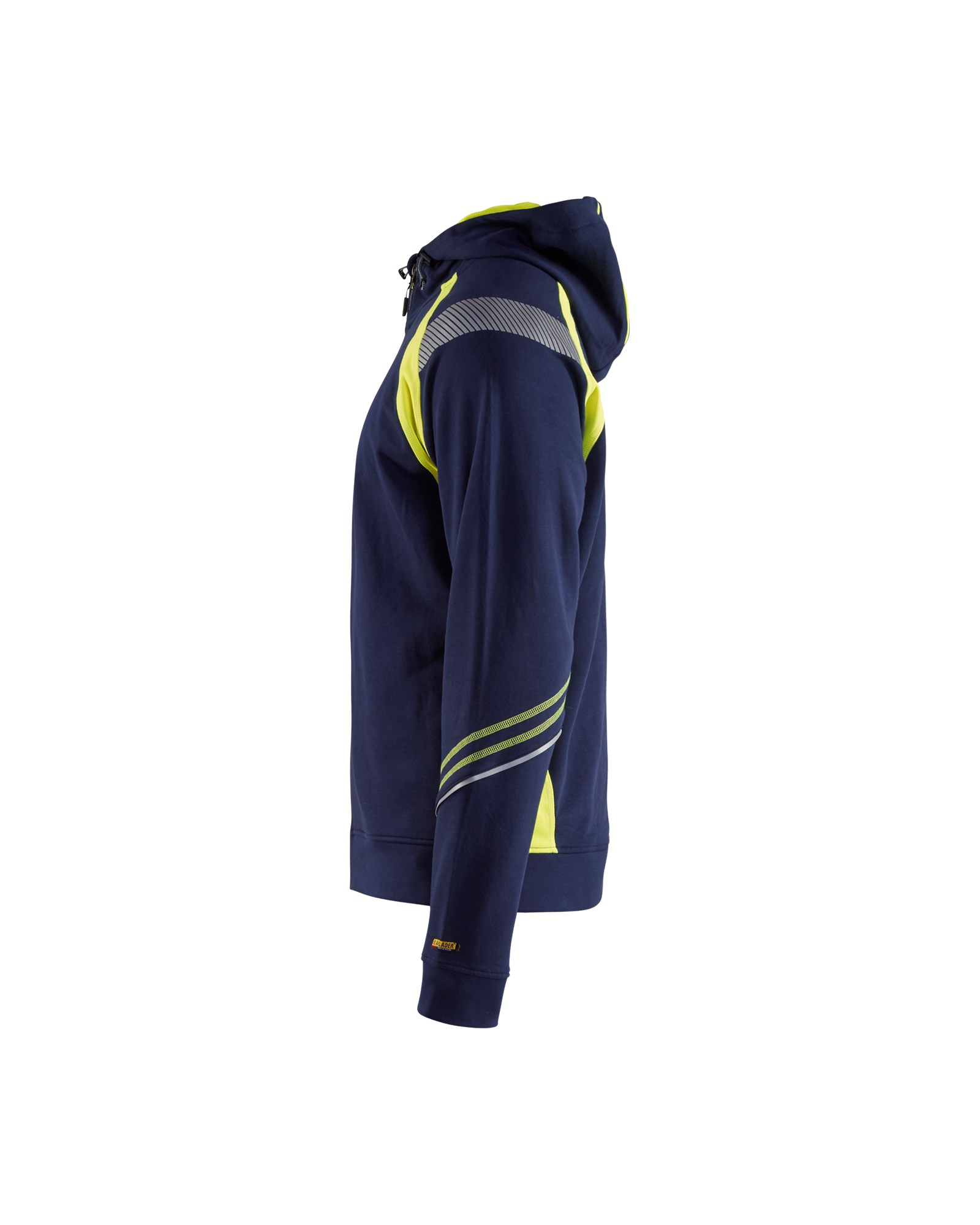 Hanorac moale si confortabil confectionat din bumbac. Detalii si aplicatii reflectorizante pentru vizibilitate sporita, betelie in partea de jos si pe maneci, si buzunar interior cu fermoar pentru telefon. Zona inchisa la culoare a hanoracului consta din bumbac 100% si zona cu vizibilitate sporita din poliester 100%.